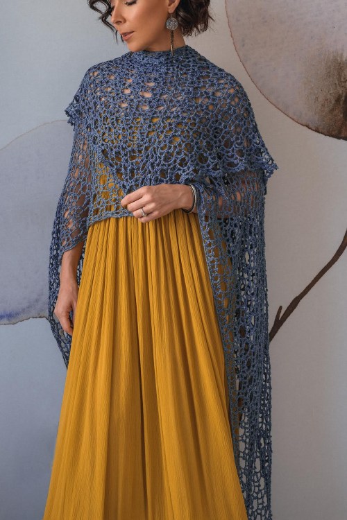 “Dantelina,” derived from the Malagasy word for “lace,” embodies the delicate beauty of fine threads woven into intricate patterns. This versatile openwork lace shawl is perfect for adding a touch of sophistication to any outfit. The pattern offers two sizes: a scarf measuring 44 inches by 20 inches (112 cm x 51 cm) and a shawl measuring 95 inches by 37 inches (241 cm x 94 cm), both customizable to suit your preferences.