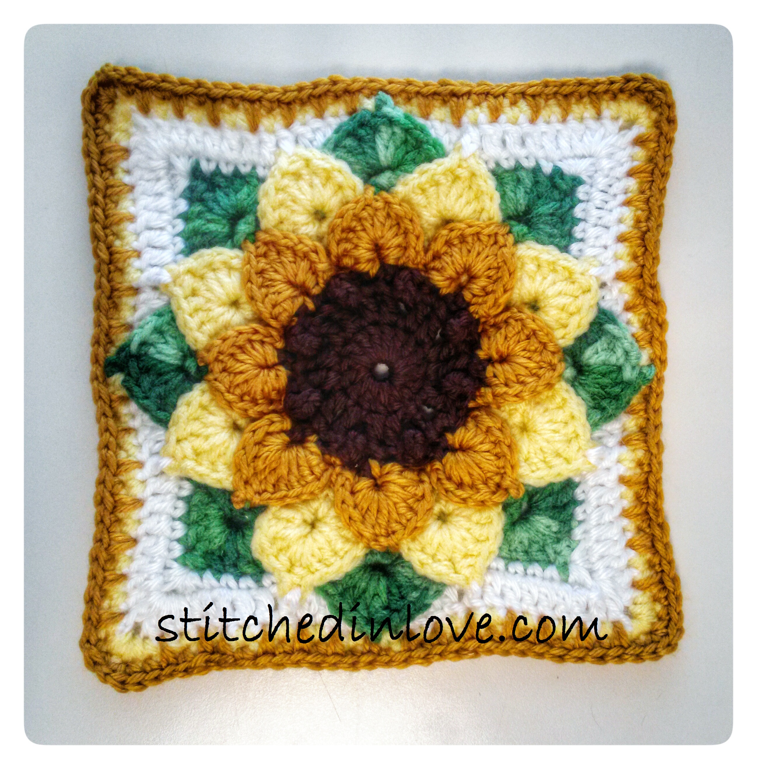 So what I ended up making turned out to be a combination of two different “sunflower” patterns, plus the background from June’s Square  Eleven.