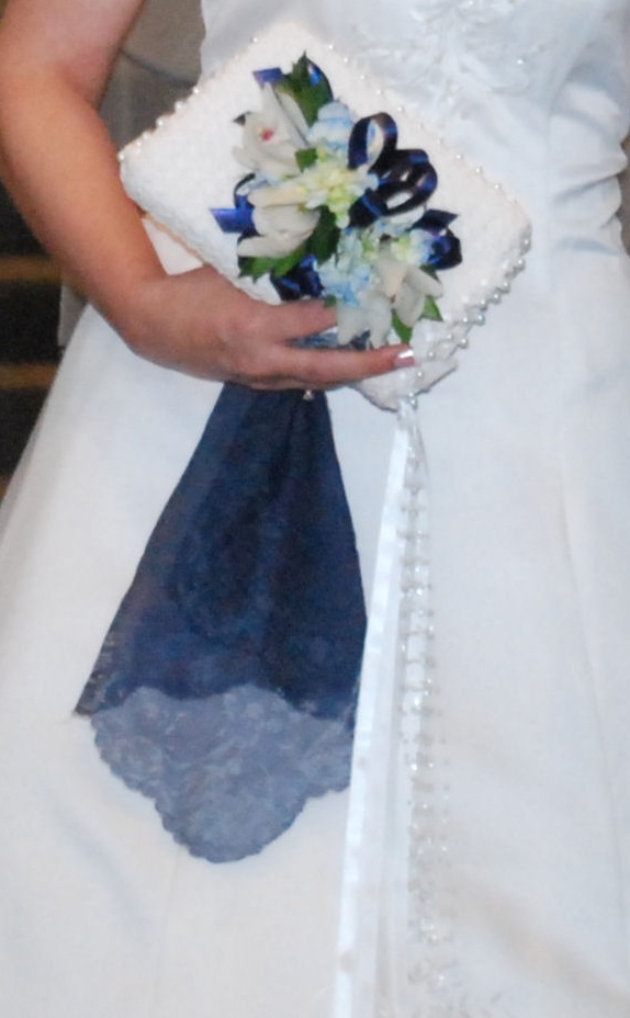 I suspected that a lot of people thought I was crazy when I told them I was going to carry a Bible down the aisle with a crocheted cover on it instead of flowers. (Though no one actually said so.) But it turned out absolutely perfect and I pined a corsage to the front for embellishment on the big day.