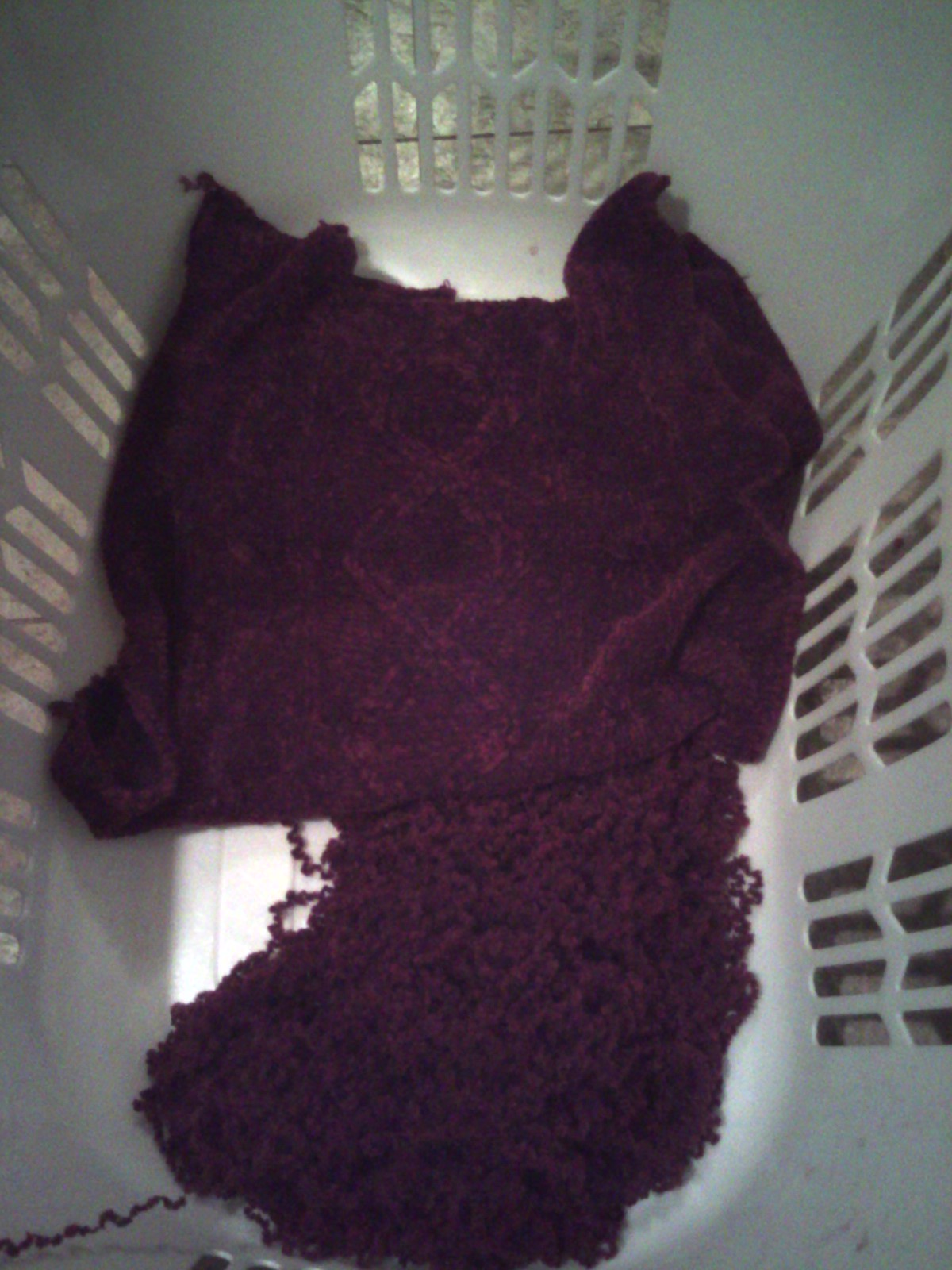 I got the most wonderful idea today when reading over a fellow wordpresser’s blog. In her post Unraveling, this fellow crafter talked about buying a sweater at a thrift store, unraveling the stitches, and using the yarn to make a hat. I was completely inspired by this idea!